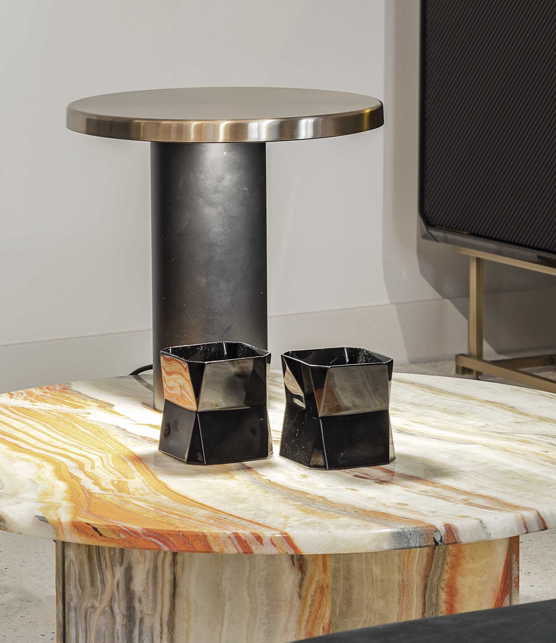 Today, the brand works with refined, sometimes experimental materials – including stone, marble, galvanised metal, and textured finishes – all crafted with meticulous skill. Ongoing research in lighting technology ensures that Oluce pieces continue to meet the highest standards of innovation and performance.