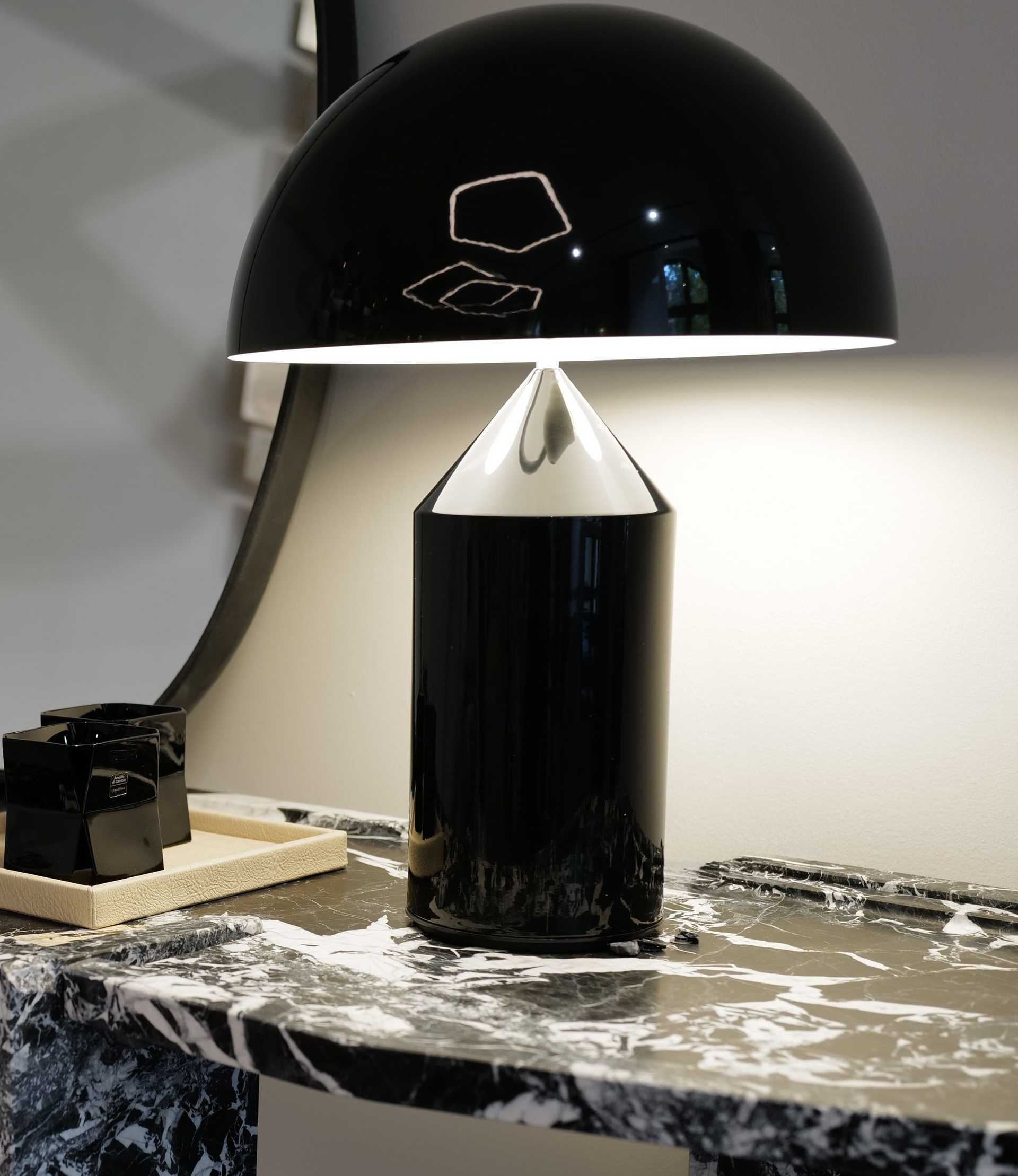 Among the brand’s most recognised pieces are some of the greatest lamps ever created. One of the most celebrated: the Apollo table lamp by Vico Magistretti (1977), recipient of the prestigious Compasso d’Oro and now part of permanent museum collections including:
