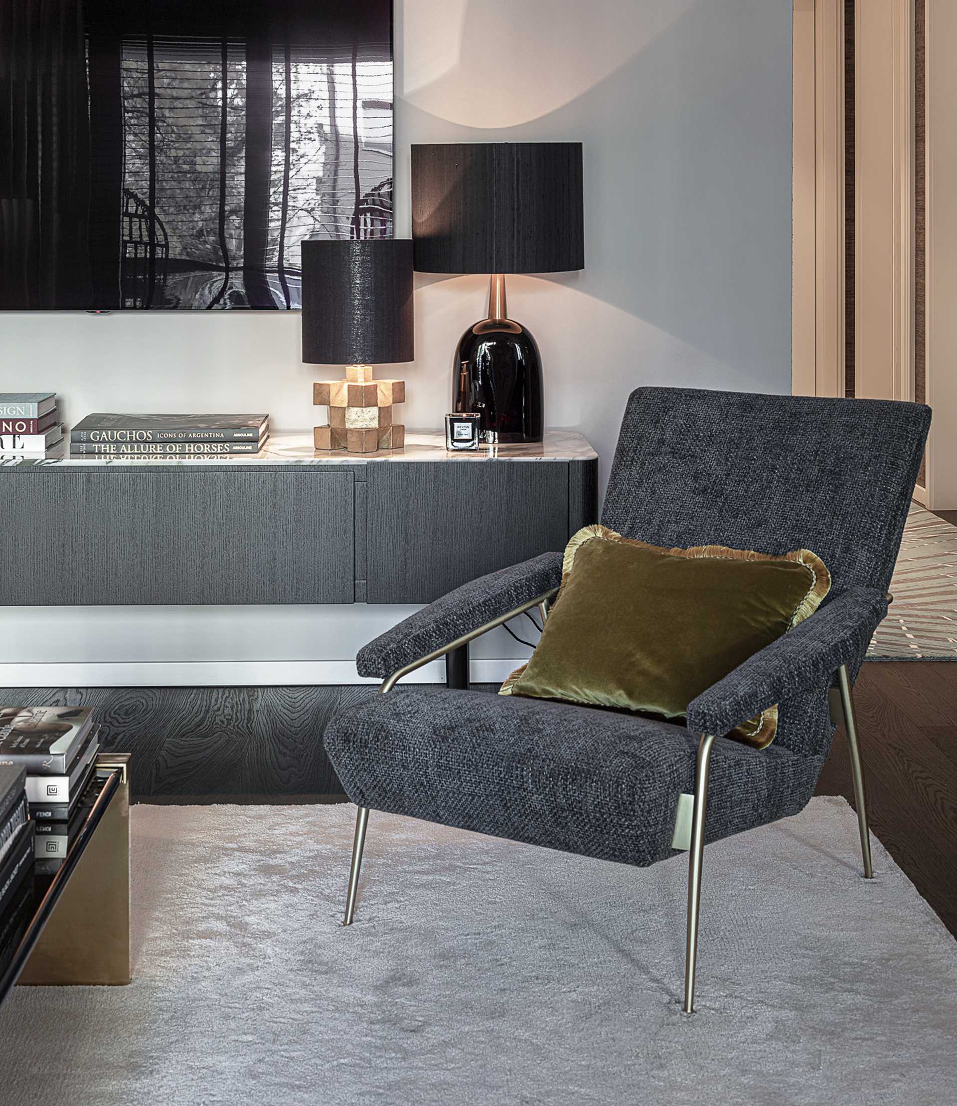 Minotti lounges unite Milanese tailoring with German precision – their fabrics shimmer differently depending on the light. Porta Romana lighting acts like metallic poetry, their patina reminiscent of rainy Munich evenings. Dedar curtains choreograph daylight like a baroque painter, while Jim Thompson textiles add colour accents inspired by Kandinsky’s palette.