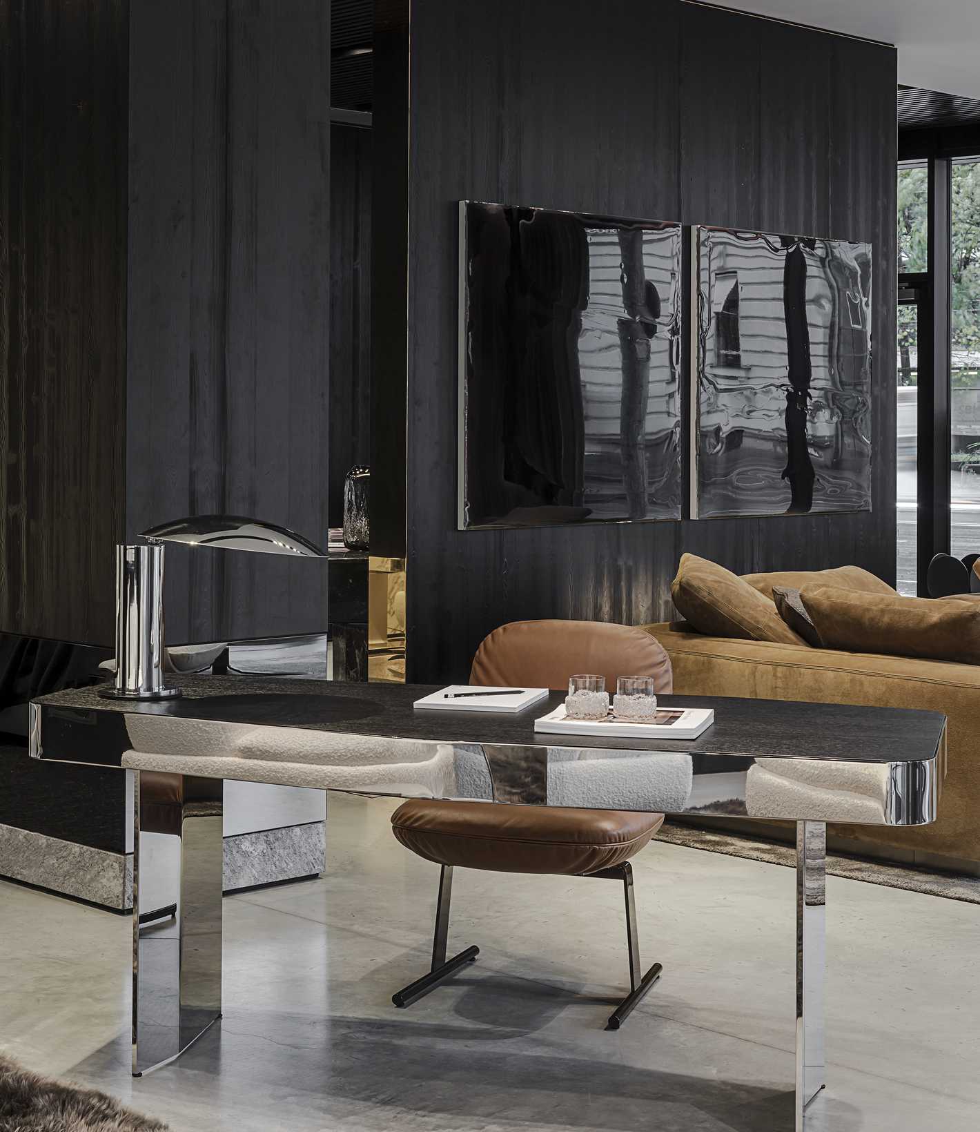 Der Schreibtisch Diagramma ist sich dank seiner eindrucksvollen Optik ein dekoratives und zugleich funktionelles Möbelstück, das sich perfekt im Home-Office integrieren lässt, und auch in Wohn- und Schlafbereichen einen Hauch von Einzigartigkeit vermittelt.
