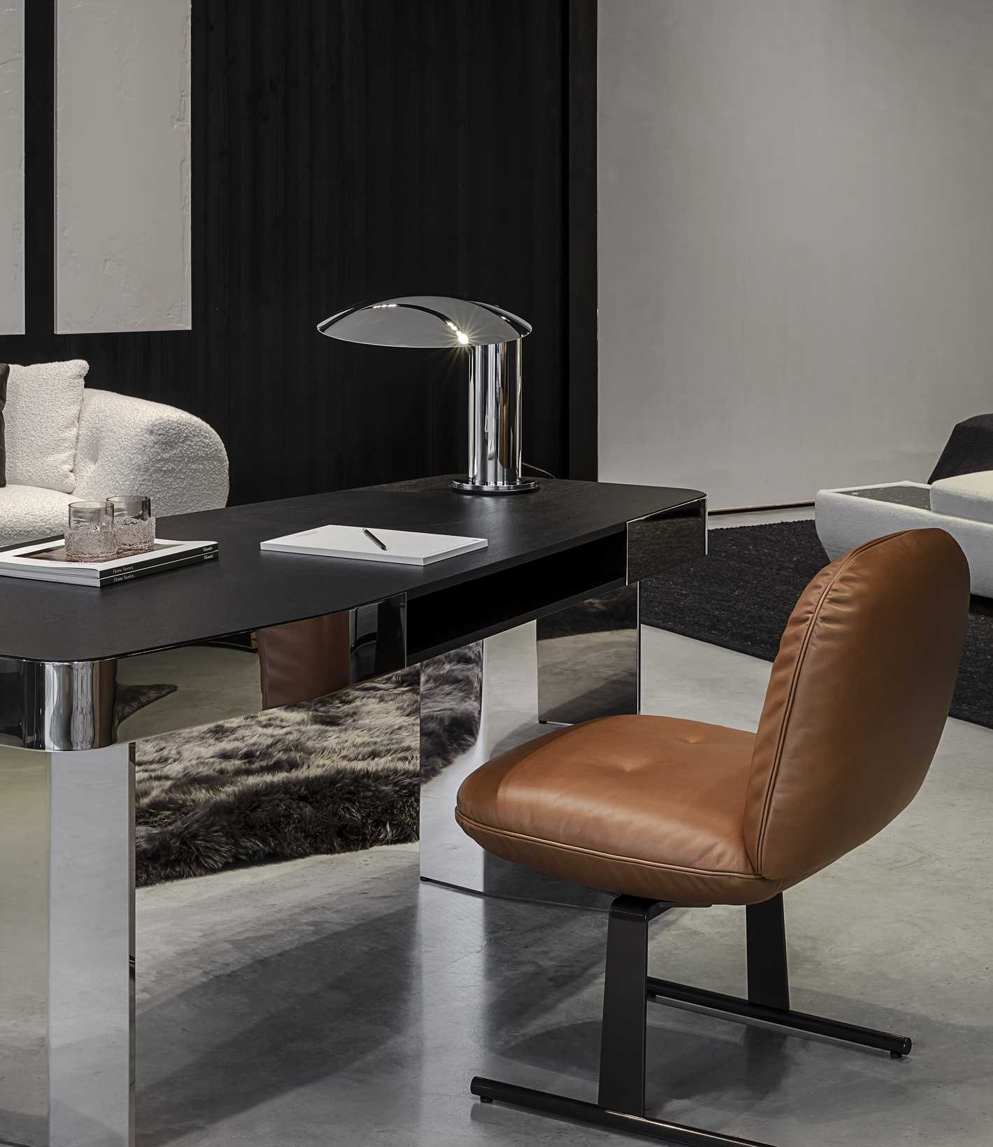 Die von Giampiero Tagliaferri entworfene Serie Libra ist von der 1970er Jahre inspiriert und besteht aus übereinander gelagerten Sitz-, Rücken- und Kopfstützen, die mit präzisen Nähten in der Mitte der Polsterung verziert sind, und den hochwertigen und dreidimensionalen Effekt verstärken.
